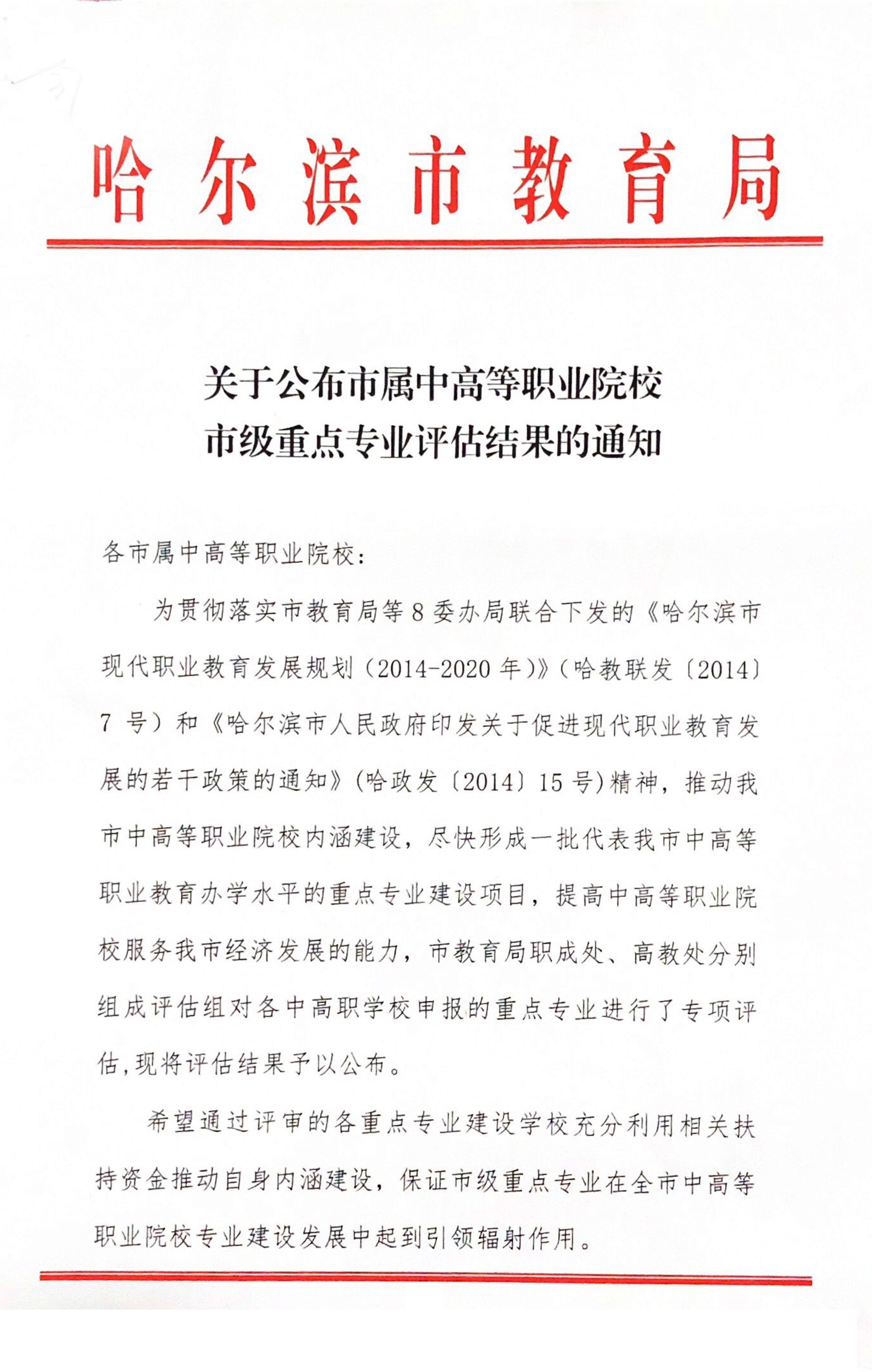 被哈爾濱市教育局評為“市重點專業”