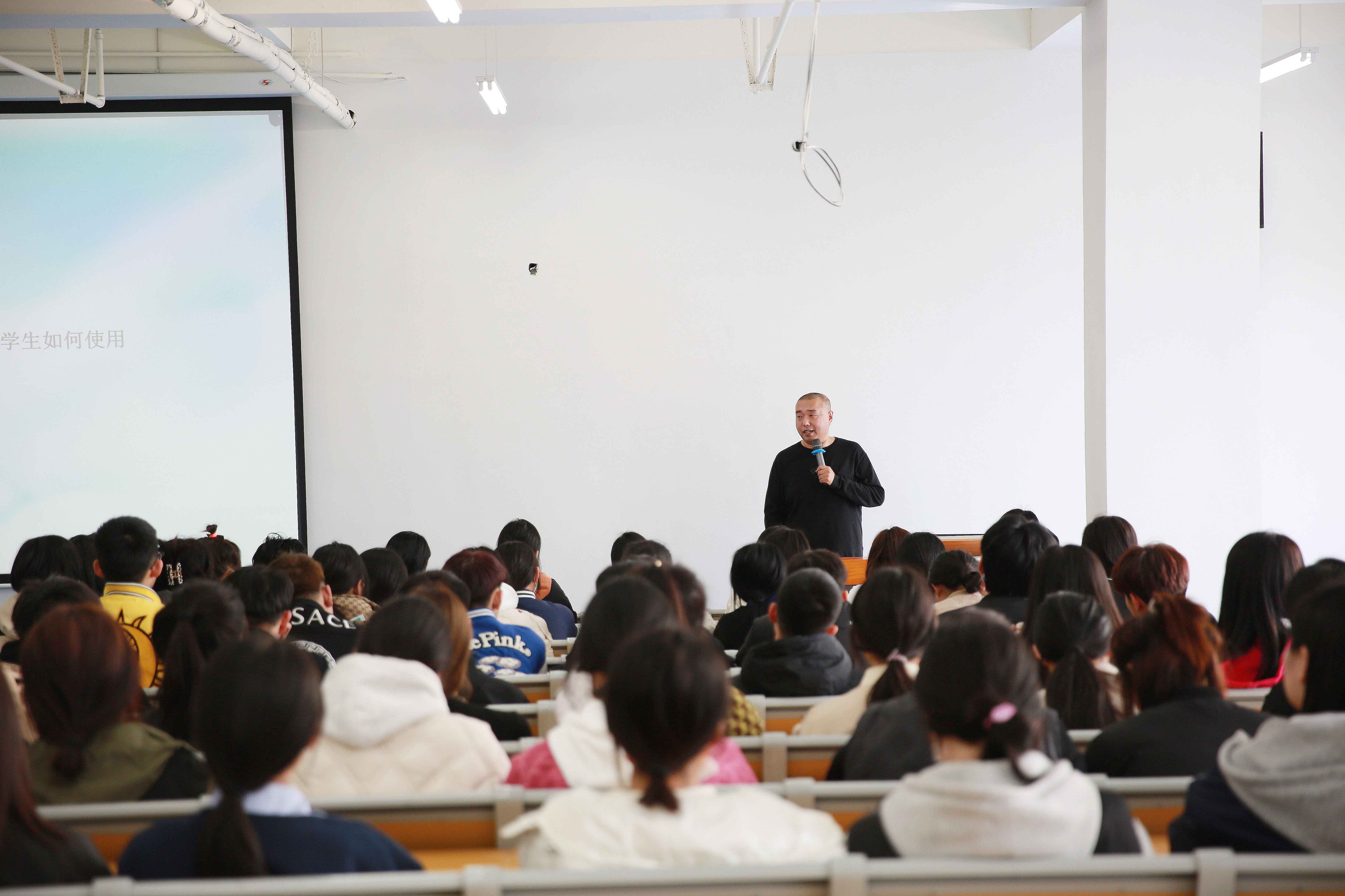 張爽老師在階梯教室給同學們召開了“入學教育”班會。